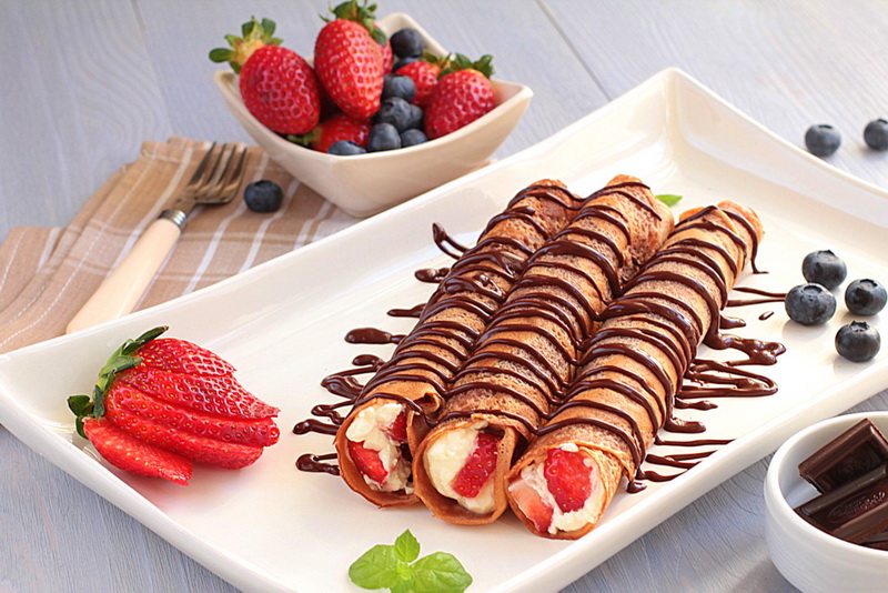 Das Paradies für süße Zahn ist Pfannkuchen mit Schokolade. Fügen Sie nach eigenem Ermessen den Pfannkuchen der nutigen oder geschmolzenen schwarzen, Milchschokolade hinzu. Auch das Waschen, um Pfannkuchen mit frischer oder konservierter Früchte zu schmücken.
