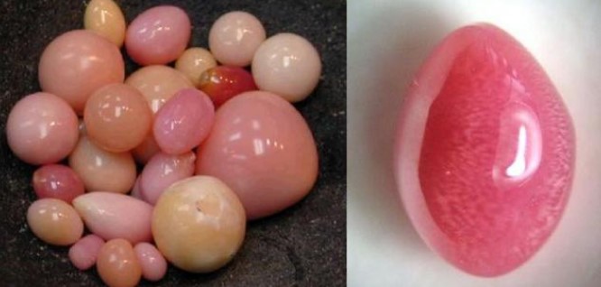 Perle Färbung hängt auch von der Art der Mollusken und dem Reservoir. Es kann von weiß bis schwarz variieren, lila, blau und golden. Und nur einer von 13.500 tausend Perlen ist rosa. Solche Perlen enthält keine Perle, so ist es sehr ungewöhnlich aussieht. Die Kosten für eine solche Perle kann bis zu 120 Tausend US-Dollar erreichen.