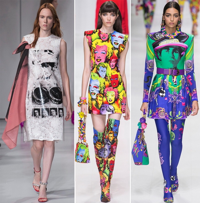 Drucke im Pop-Art-Stil werden in allen verwendet: von Kleidern bis hin zu Taschen und Schuhen. Natürlich werden Outfits mit einem solchen Druck nicht jeden Tag passen, insbesondere wenn Sie eine strikte Kleiderordnung im Büro haben, aber für Ausgänge des Lichts - am meisten!