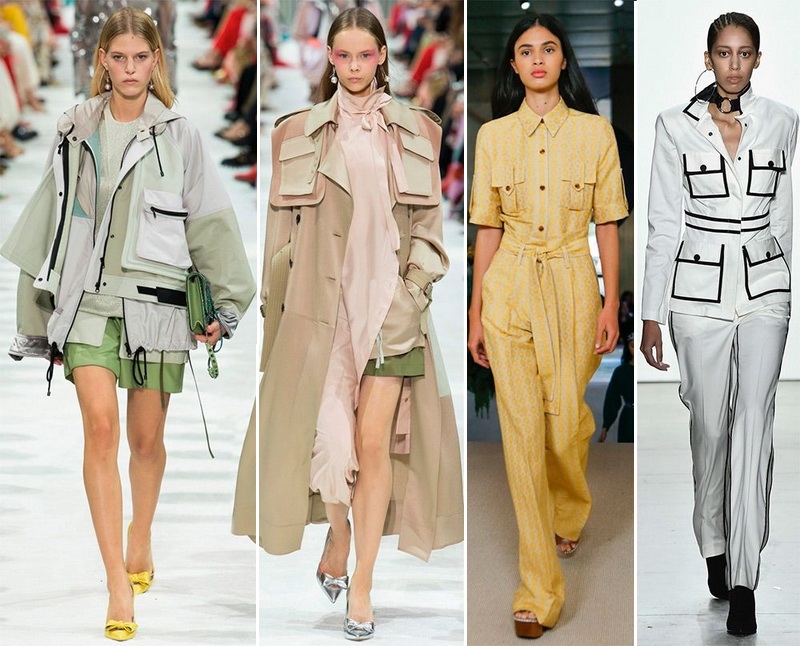 Sehr ursprünglich in Outfits mit großen oder sogar Overhead-Taschen angesehen. Es ist sehr praktisch (manchmal aufgrund der Größe der Taschen, die Sie die Handtasche sicher ablehnen können). Ein solcher funktionaler Trend wurde in den Sammlungen von Victoria Beckham, Valentino und Christopher Kane präsentiert.