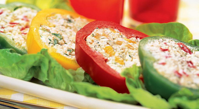In der Saison des Gemüses gibt es nichts einfacher als die mit Quark und Grüns gefüllten Paprika zuzubereiten. Servieren Sie es besser mit getrockneten Toast oder mit Vollkornbrot.