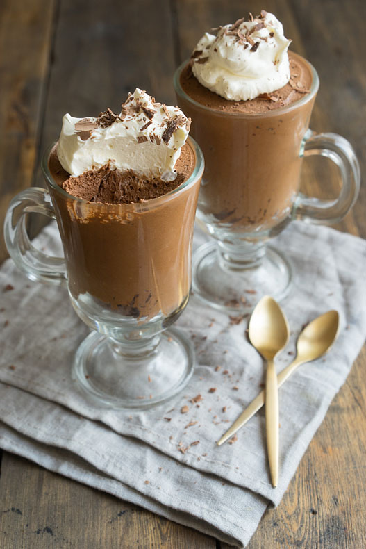 Hier gingen wir noch weiter, denn um diesen köstlichen Mousse zu erstellen, benötigen Sie nur 2 Zutaten: Schokolade und Wasser. Dessert mit Schlagsahne oder knusprigen Flocken von Mandeln servieren.