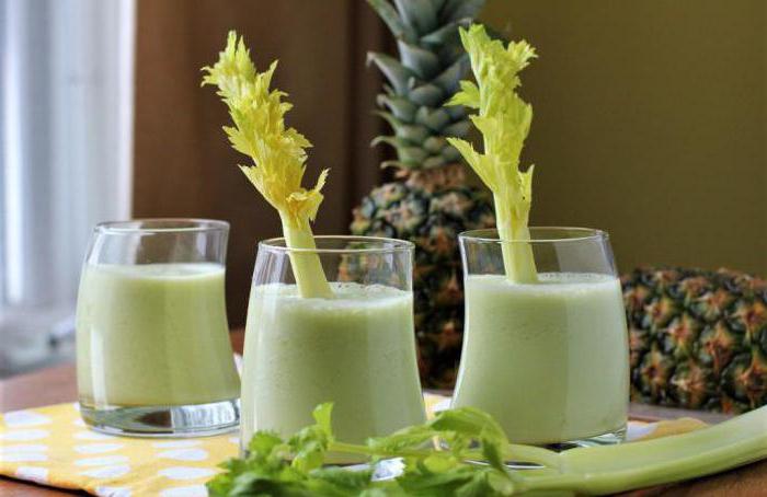 Sellerie hat ein sogenanntes negatives Kalorien. Dies bedeutet, dass der Körper den Sellerie verdauen, mehr Energie verbringt, als in der Pflanze selbst enthalten ist. Um einen Cocktail vorzubereiten, benötigen Sie ein Sellerie-Bundle und 50 Gramm Joghurt, Sie können auch einen Kalksaft hinzufügen. Sie müssen vor dem Essen einen Cocktail trinken.