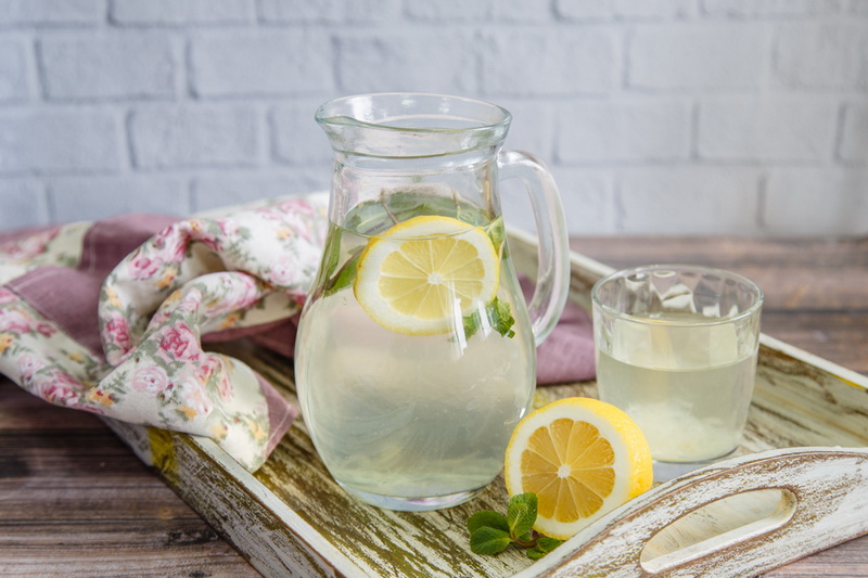 Um dieses köstliche und gesunde Getränk vorzubereiten, fügen Sie in kaltem Wasser, Minze, Ingwer und etwas Honig frische Zitronenkreise hinzu. Bestehen Sie die Mindeststunde. 2 Liter eines solchen Getränks jeden Tag - und Sie werden bemerken, wie die Taille alle dünner werden wird.