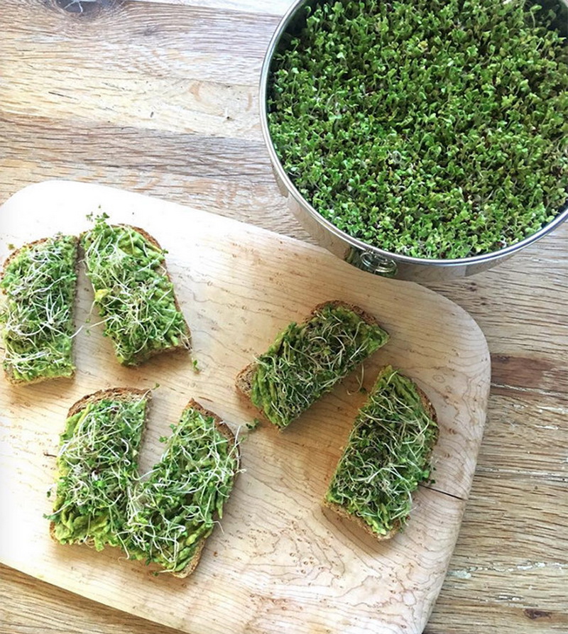 Frühlingsprossen können zu Smoothie, Suppen, Salaten, Burgern und Sandwiches hinzugefügt werden. Begrenzen Sie in dieser Hinsicht Ihre Fantasie nicht. Die Hauptsache ist, dass es keine Wärmebehandlung sein kann, da sonst alle nützlichen Eigenschaften verloren gehen.