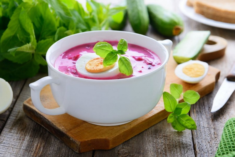 Eine der beliebtesten Mahlzeiten in der Sommerhitze ist der Suppenbeetter. In seiner Basis ist die Brühe, die sich nicht auf Fleisch vorbereitet, sondern auf einem Bipoon Rüben. Der BEETTER wird mit Sauerrahm und Grüns serviert und manchmal mit Eis.