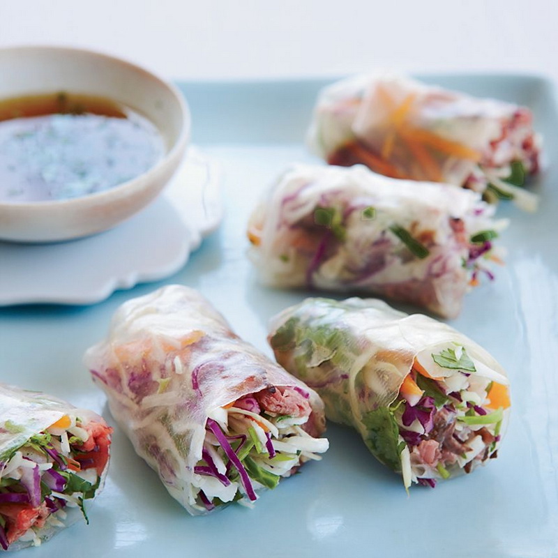 Eine weitere großartige Version des befriedigenden Mittagessens ist Rolls mit einem Roast-Rindfleisch im asiatischen Stil. Es reicht Ihnen für Sie, ein Rinderrindfleisch zuzubereiten und von Rohgemüse zu füllen. Nur verstopfen, füllt das Reispapier. Servieren Rollen mit Sojasauce und Zitronenscheiben.