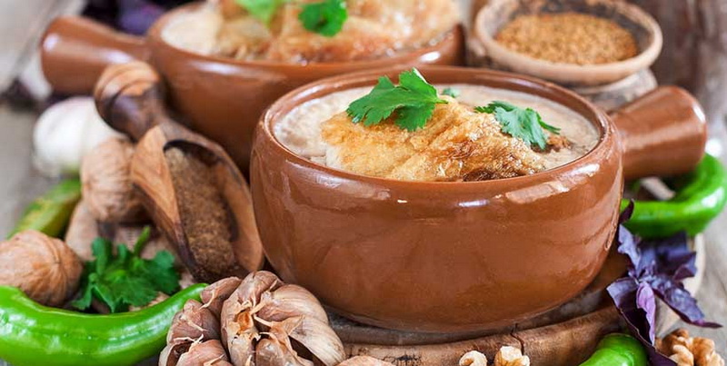 Die wichtigsten Vorteile dieses Gerichts sind, dass es befriedigend, lecker, einfach kochen und auch in der Tatsache, dass die Fütterung von Saziva (oder Huhn in Nusssauce) kalt angenommen wird.