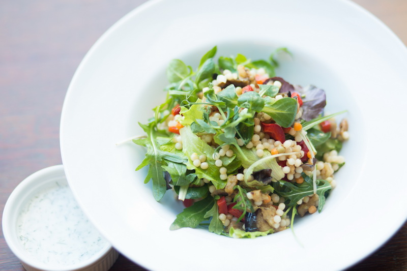 9. Salat mit Couscous, Garnelen und Spinat