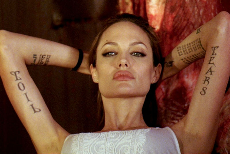 Die Schauspielerin tat sein erstes Tattoo, während noch ein Teenager. Dann war es ein Hieroglyph, das "Tod" bezeichnet. Also versuchte Angelina, sich selbst und der Welt zu beweisen, die keine Angst vor dem Tod hatte. Dann trat Jolie den Geschmack ein, und eine große Anzahl komplizierter Zeichnungen erschien auf ihrem Körper: Amulette, Kreuze, ein riesiger Tiger auf der Rückseite, der Teufelzahl "13". Übrigens wurden die Koordinaten der Orte an der Schulter bemerkt, wo alle ihre Kinder geboren wurden.