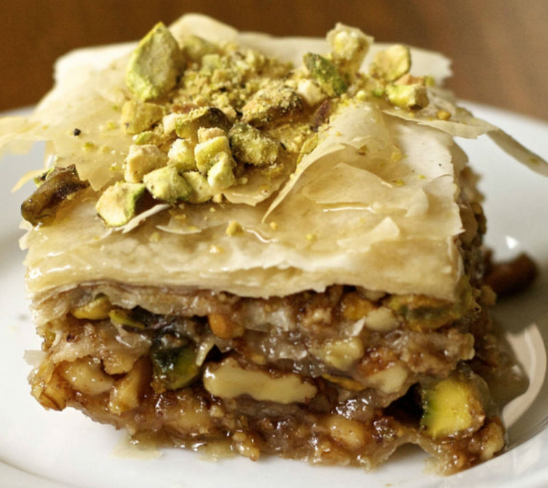 Zur Herstellung von Pakhlava verwenden die Türken den feinsten Teigfilmo, der mit Butter und Sirup von Honig, Zucker und Orangenwasser imprägniert ist. Zwischen den Teigschichten legen feine gehackte Nüsse. Am häufigsten - das sind Pistazien. In der Antike konnte PAHLAVOY nur Sultans hingeben.