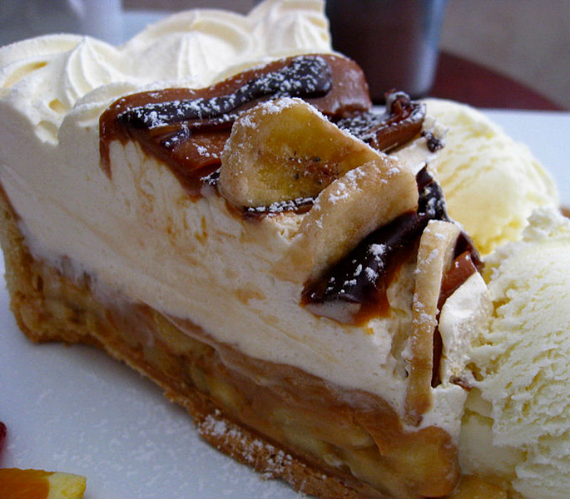 Der Geburtsort dieses ungewöhnlichen Kuchens ist England. Hier ist es aus Bananen, sanften Creme, zerkleinerten Keksen, Karamell und gekochter Kondensmilch hergestellt. Margaret thatcher selbst liebte sich, um Banoffy vorzubereiten und sie seine Gäste zu behandeln.