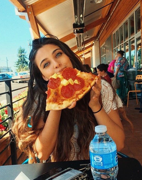 Folgen Sie der Gesundheit und des Volumens Ihrer Taille natürlich lobenswert, aber manchmal müssen Sie sich entspannen können, um den Geschmack des Lebens zu fühlen. Das Mädchen, das mit Appetit den Teil der Kartoffeln Fri oder Pizza fliegt, weiß definitiv, wie man das Leben genießt.