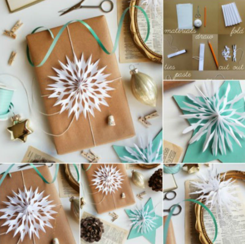 Papierschneeflocken sind sehr lustig und spannend, außerdem eignen sie sich ideal zum Dekorieren von Neujahrsgeschenken.