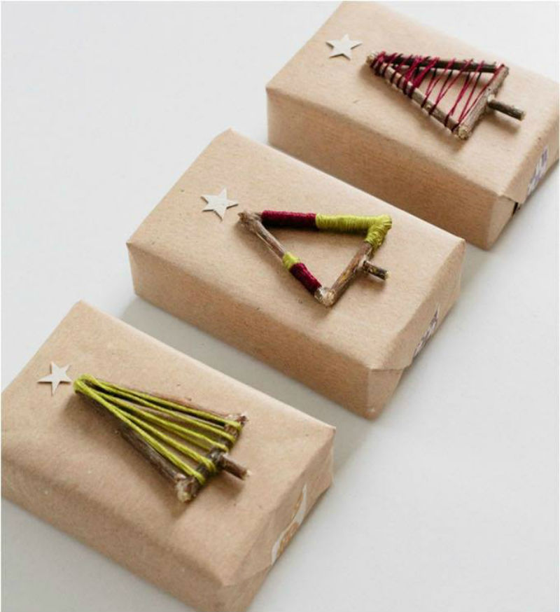 Einfache Garn und trockene Zweige helfen Ihnen, einen erstaunlich niedlichen Weihnachtsbaum zu schaffen. Ist das nicht die beste Ergänzung des Neujahrsgeschenks?