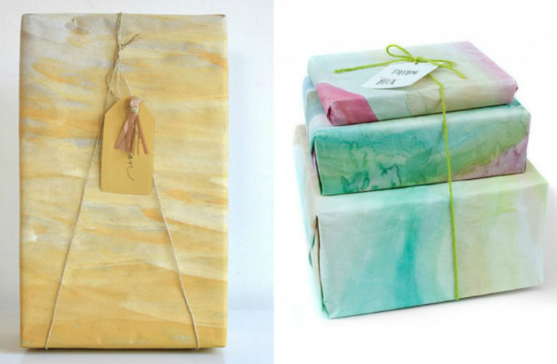 Willst du ein wirklich einzigartiges Verpackungspapier, "Zeichne es selbst". Malt, um Ihnen zu helfen. Sie können ein sanftes Aquarell oder enge Gouache verwenden - nur Sie lösen.