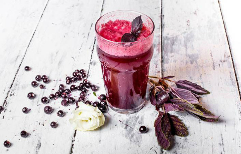 Nehmen Sie ein kleines Bündel eines lila Basilikums, trennen Sie die Blätter von den Zweigen und platzieren Sie sie in das Noch zum Brühen. 100 g hinzufügen. Schwarze Johannisbeere Beeren und 30 g. Zucker. Dicke Beeren sorgfältig, damit sie Saft lassen. Füllen Sie 0,5 Liter heißes Wasser und lassen Sie es 7-10 Minuten brauen. Kochen Siefertige Tee in Becher und hinterlassen Sie alle paar Limettensaft. Genießen!