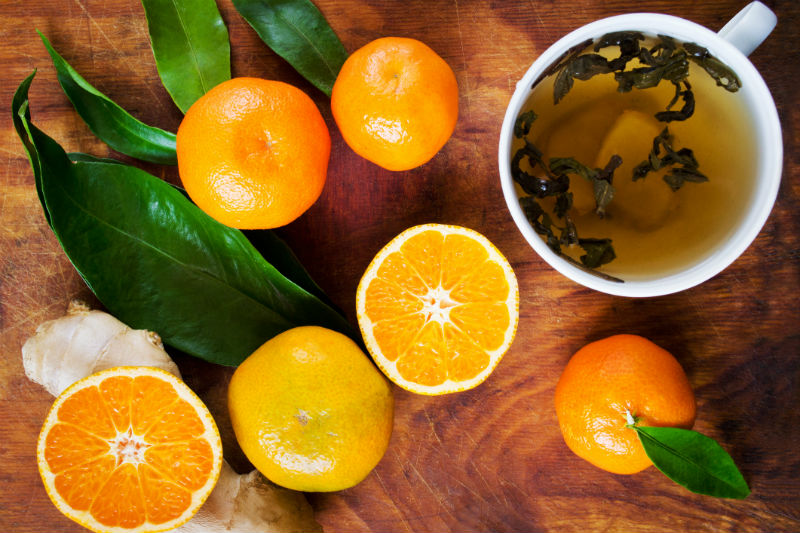 Nehmen Sie 70 ml heißer grüner Tee, 70 ml Orangensaft, ein paar Körner von Kardamom, einem Münzweig, einem Löffel Honig und 150 ml kochendem Wasser. Mischen Sie alle Zutaten und Hitze auf dem Ofen. Aber bringen Sie nicht zum Kochen. Schauen Sie sich das fertige Getränk an und setzen Sie zwei Grapefruitscheiben. Nun ist die Anklage von Fröhlichkeit bereitgestellt!