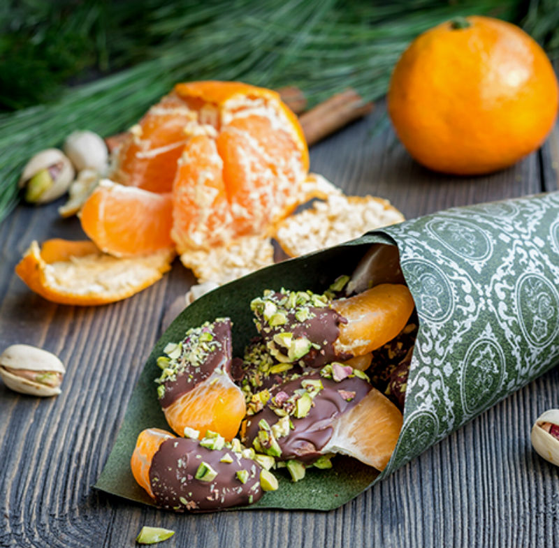 Ausgezeichnete Alternative zu Pralinen. Keine Schwierigkeiten beim Kochen. Sie möchten sich selbst Mandarine essen, oder Sie können sie in solche schönen Umschläge packen und Freunde geben.
