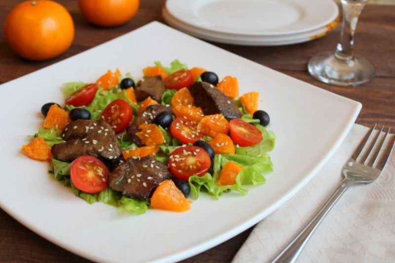 Lebersalat mit Mandarinen? Warum nicht? Kochen Sie es schnell und einfach. Eine ungewöhnliche Kombination von Inhaltsstoffen, um Ihre Vorstellung von der Kombination von Inkompatiblen genau zu ändern.