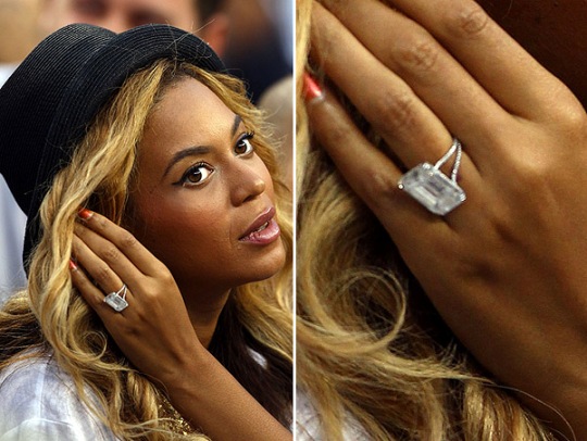 Beyonce, recht, berücksichtigen Sie den Besitzer der teuersten und luxuriösen Ringe unter modernen Sternen. Im Jahr 2008 präsentierte der Rapper Ji Susi die Sängerindekoration mit einem Diamanten von 18 Karaten eines seltenen Schnitts "EMERALD".