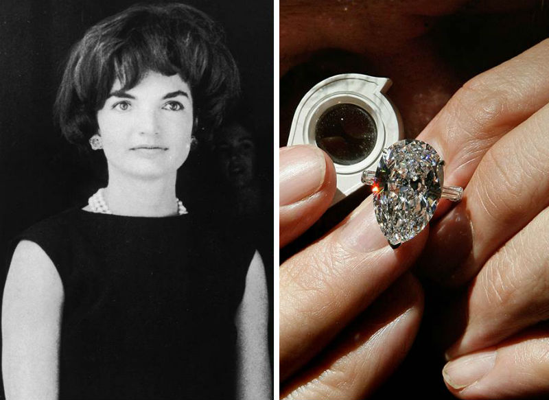 Jacqueline erhielt noch eine noch anmutigere Dekoration aus seinem zweiten Ehepartner - dem griechischen Versand-Magnat Aristoteler ORESSIS. Neben der privaten Insel am Vorabend der Hochzeit gab der Ehepartner ihr einen Ehering mit einem 40-Karat-Diamanten des Schnitts "Marquis".