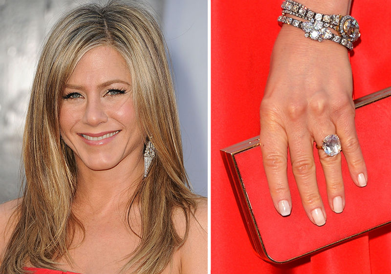 Nun präsentierte der Ex-Ehepartner-Schauspielerinnen Justin Tera auf dem Engagement Jennifer Aniston Ring mit einem großen Diamanten von 10 Karat und 10 Millionen Dollar.