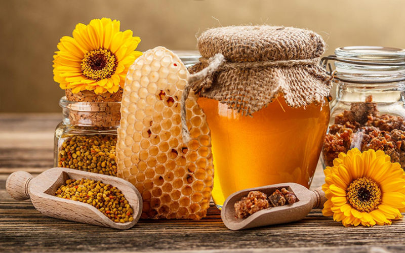 Honig, Pollen, ist Perga eine erstaunliche Quelle einer Reihe von Vitaminen, darunter seltene B12 und essentiellen Aminosäuren. Honig hat auch starke antivirale und antibakterielle Eigenschaften. Daher ist es besonders nützlich im Winter zu verwenden.