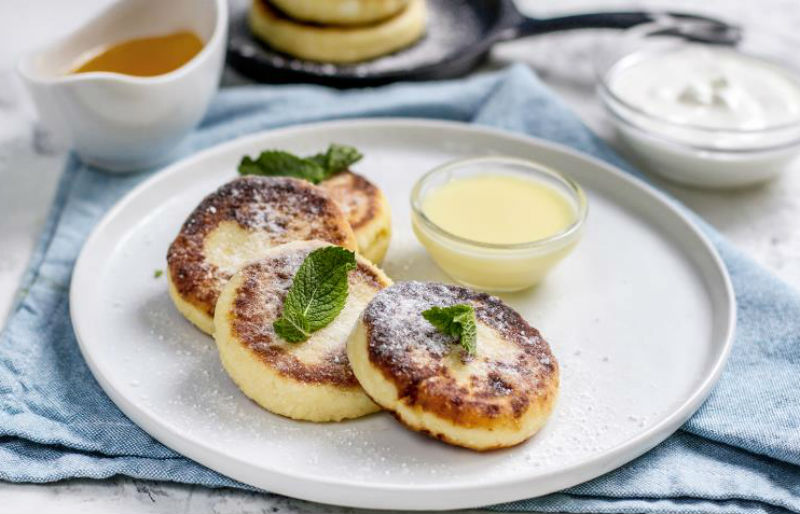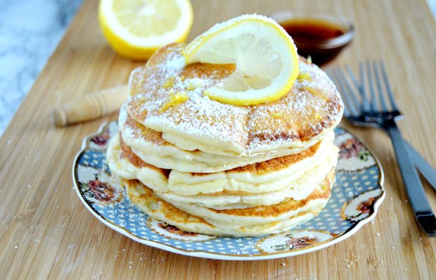 Sanfte Zitrone Pankeys mit Ricotta - Was kann schmeckend sein? Sie sind vollkommen mit Beeren, Honig, Aprikosenstau kombiniert. Hier können Sie endlos improvisieren.