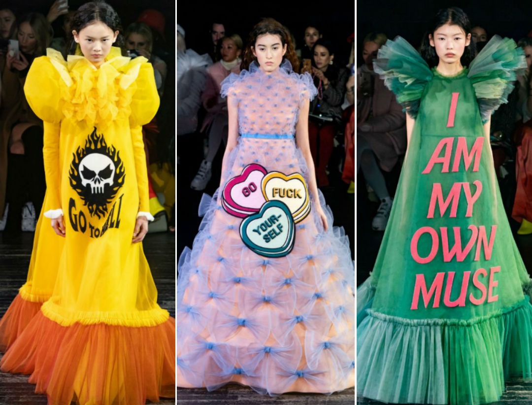 Die Wirkung des Internets ist längst sichtbar. Grundsätzlich besorgt dies natürlich die Sammlungen von Rushing-A-Port-Kleidung. Aber nicht Coutor. Jetzt und diese Festung ist gefallen. Auf der Erstellung einer neuen Sammlung von Viktor Huthing und Rolf Snains inspiriert Instagram inspiriert. Jetzt Inschriften wie "Fahr zur Hölle.","Ich bin nicht sy, ich mag dich einfach nicht"Und andere sind nicht mit der Bedeutung des Satzes belastet, den wir oft in Tape Instagram, verzierter Kleidern sehen, die Kosten, von denen die Kosten eine Million Dollar übersteigt.