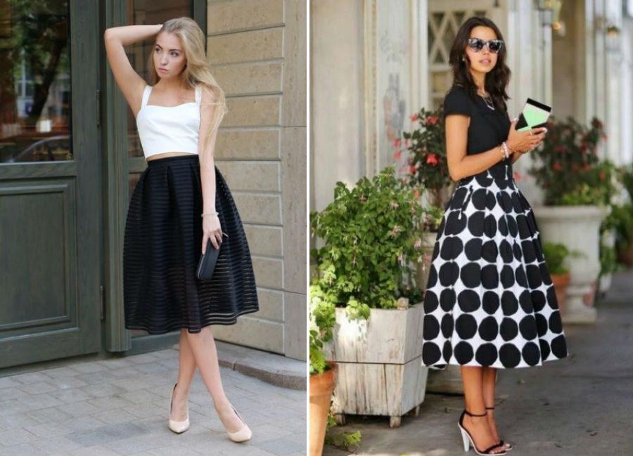 Die Röcke von mittlerer Länge mit tiefen Hostessen, in den meisten Fällen schaffen eine sehr ungeschickte Silhouette. Nicht jede Frau solche Modelle gehen. Aber auch diejenigen, die gehen, ist es ratsam, sie irgendwo auf dem anderen Regal im Schrank zu verschieben. Vielleicht wird die Zeit kommen, wann sie wieder gefordert werden. Aber nicht jetzt. Wie sie ersetzen? Ähnliche üppige Röcke, aber mit einem dichten Sitz auf der Hüfte. Die Hauptsache ist von dieser leicht artifiziellen, scharfen Silhouette „Barrel“ wegzuzukommen.