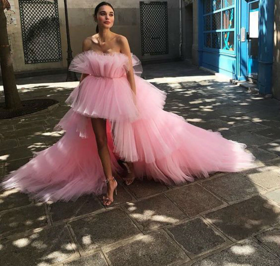 Skulpturale Schwäne, Rüschen helfen, ein wirklich feminines und berührendes Bild zu schaffen. Inspirieren Sie futuristische Bilder Iris Wang Harpen oder Bohemian Decade Rodarte - und alles wird herausstellen.