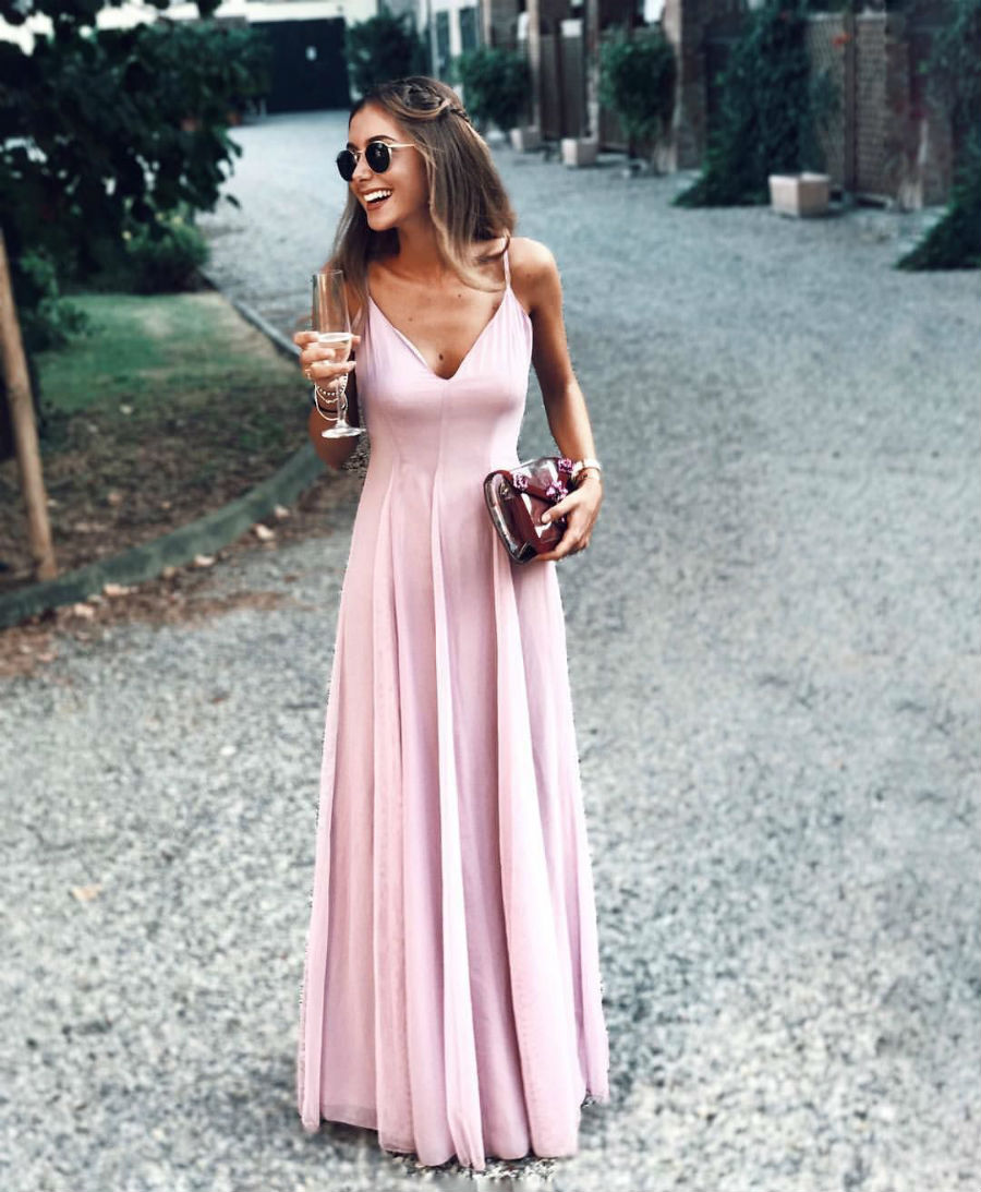 Wenn Sie allergisch an glamourösen, üppigen Kleidern, wie eine Disney-Prinzessin, allergisch sind, setzen Sie eine Wette auf Weiblichkeit und Natürlichkeit. Kleider mit Geruch - perfekte Option. Um nicht in der Menge verloren zu gehen, wählen Sie Luxus Texturen und saftige Farben.