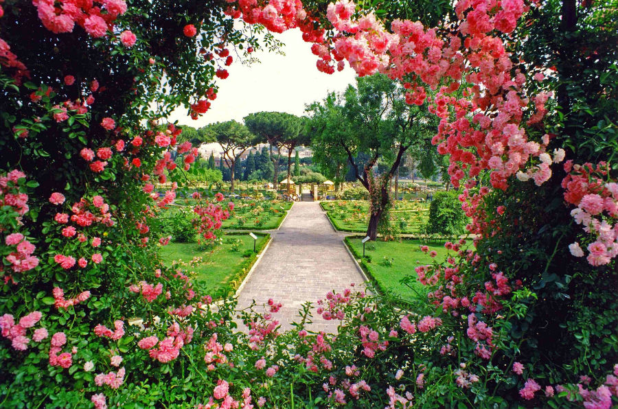 Der Stolz des botanischen Gartens in der Toskana ist ein riesiger Rosenkranz, der eine Fläche von mehr als vier Quadratkilometern vom Gesamtgebiet einnimmt. In keinem anderen Punkt des Planeten finden Sie keinen solchen großen Rosencluster mehr.