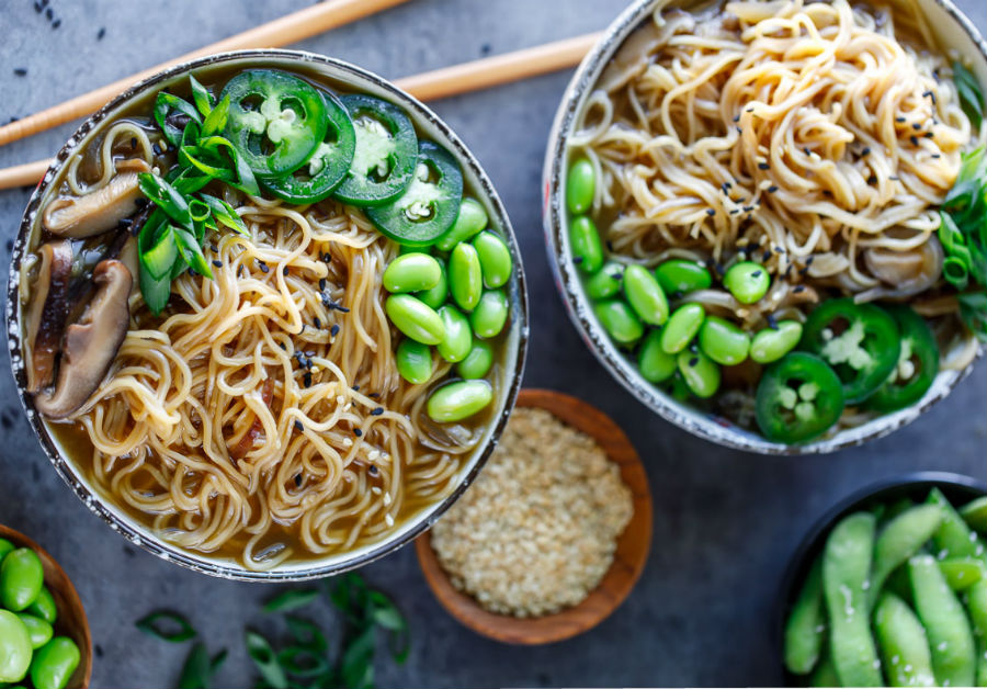 Coldsup Raman mit Shiitaka-Pilzen und Corn Salat sind im Sommer besonders relevant.