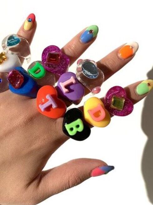 Farbige Perlenperlenperlen und Kunststoffringe, die wir gerne so sehr in der Kindheit tragen, wieder in der Mode! Sie können nicht nur an den Strand oder der Partei geschickt werden. Mutigen Kitch-Schmuck mit Business oder Casual-Stil kühn kombinieren.