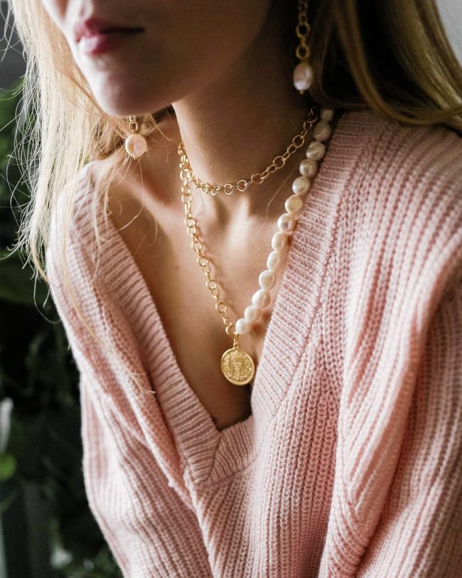 Produkte mit Meer oder Flussperlen sind ein weiterer Trend, der ab 2020 an uns bewegt wurde. Aber in einer etwas modifizierten Form. Auf dem Höhepunkt der Beliebtheit - Perlenzubehör mit Metalleinsätzen.