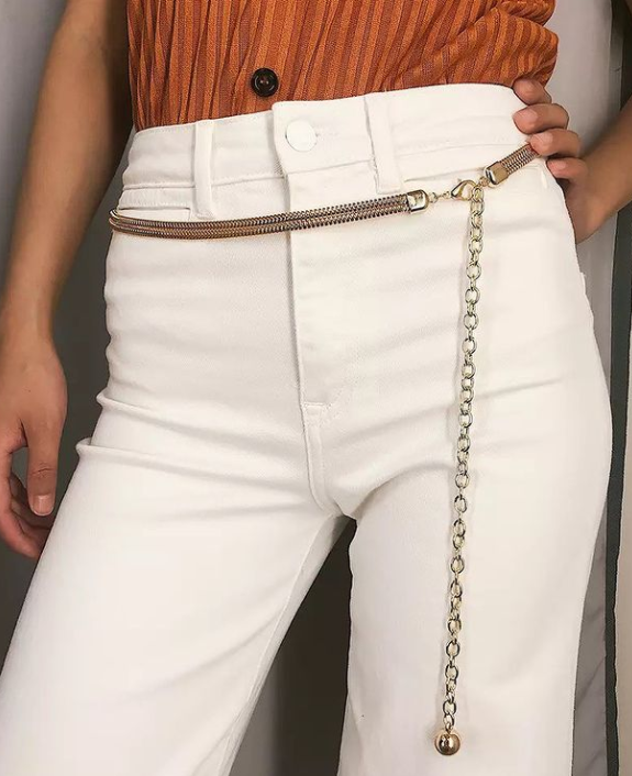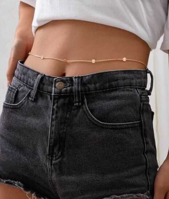 Ketten an den Taillen- und Hüften sind eines der provokiertesten Zubehör dieses Sommers. Elegante Dekorationen können sowohl auf nackten Bauch- als auch auf den oberen Röcken und den Shorts getragen werden. In Kombination mit der Bronze-Bräune macht dieses ungewöhnliche Accessoire Sie zur Königin der Sommerpartys!