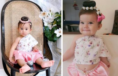10 kleine Prominente im thailändischen Kleid am Songkran-Tag