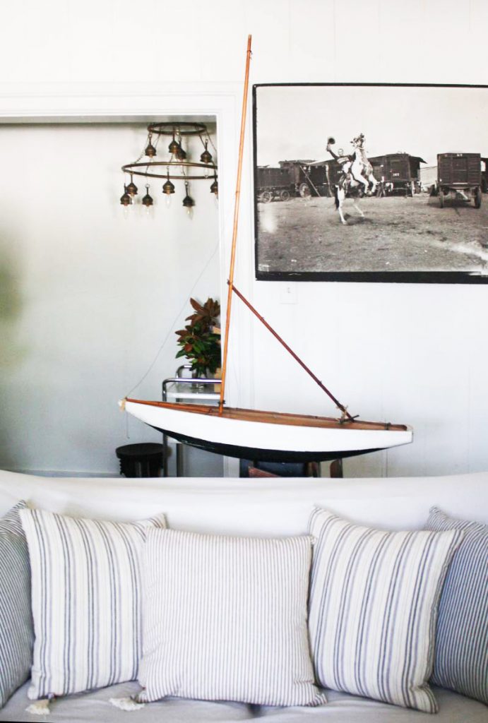 Desktoplampe oder Uhr in Form von Anker, Lenkrad, Rettungskreis; Gemälde und Poster mit dem Bild des Meeres; Spiegel; Meereszubehör, das Ruhe auf der Meeresküste ähnelt: Segelboote, Muscheln, Seesterne. Anker, übrigens können Sie sogar in der Gestaltung von Türgriffe treffen. Aquarien, die nicht nur das Zimmer schmücken, sind sehr beeindruckend, tragen aber auch zur Erholung des Alltags der Arbeit bei.