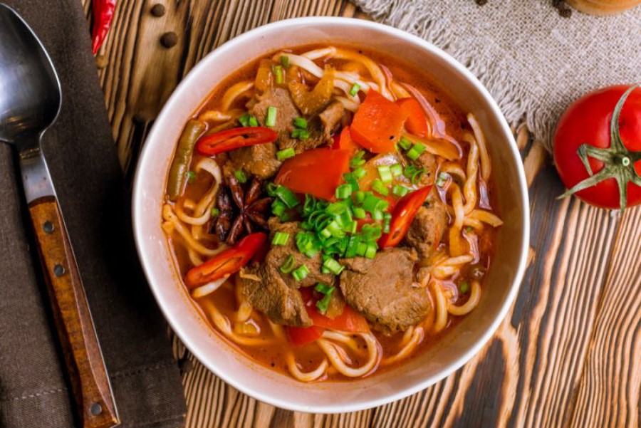 ClassicAllagman ist ein Kreuz zwischen dem ersten zweiten Teller. Es hängt alles auf dem Weg ab. Fügen Sie mehr Brühe jünger hinzu - es wird Suppe sein. Gemüse, duftende Nudeln mit Gemüse.