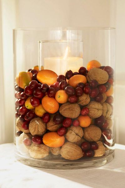 Helle saftige Granaten, Persimon, Cranberry-Beeren werden eine hervorragende Ergänzung des Bassables sein. Und diese niedlichen und ungewöhnlichen Kerzenständer aus dem duftenden Block können wörtlich in 10 Minuten gebaut werden.