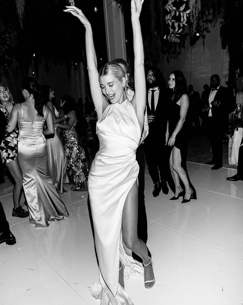 Das bevorzugte Bild des Modells versteckt sich im Voraus. Auch unter der Krone des Kopfes eines weißen Zeltes, der die Wachen dachte. Infolgedessen war Heili natürlich erstaunlich. Durch Spitze, mit offenen Schultern und einem langen Schleifenaklating und einem Schleier, auf dem die Inschrift gestickt wird, verlängert wird: "Während der Tod uns nicht trennen wird." Haley's in einer Sprühparty erschien mit einem Seidenkleid mit einem tiefen Halsausschnitt von der Hüfte.