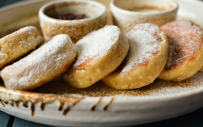 Luft-aromatischer Käse, rechts wie von der Kindheit. Die perfekte Option für den Beginn des Tages!