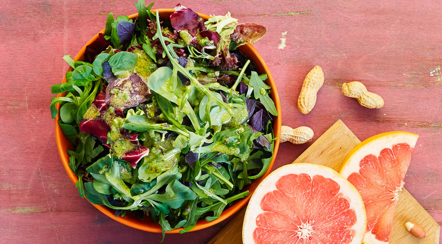Die Faser ist äußerst nützlich für die Gesundheit. Darüber hinaus sät sie schnell, dass der Körper der Energie ein Gefühl der Sattheit gibt. Anstelle des üblichen "Olivier", "Pelzmänteln", Kartoffelpüree, Kartoffelpüree und einem Kitlet, rennen Sie auf Salaten aus grünem Blattgrün und frischem Gemüse.