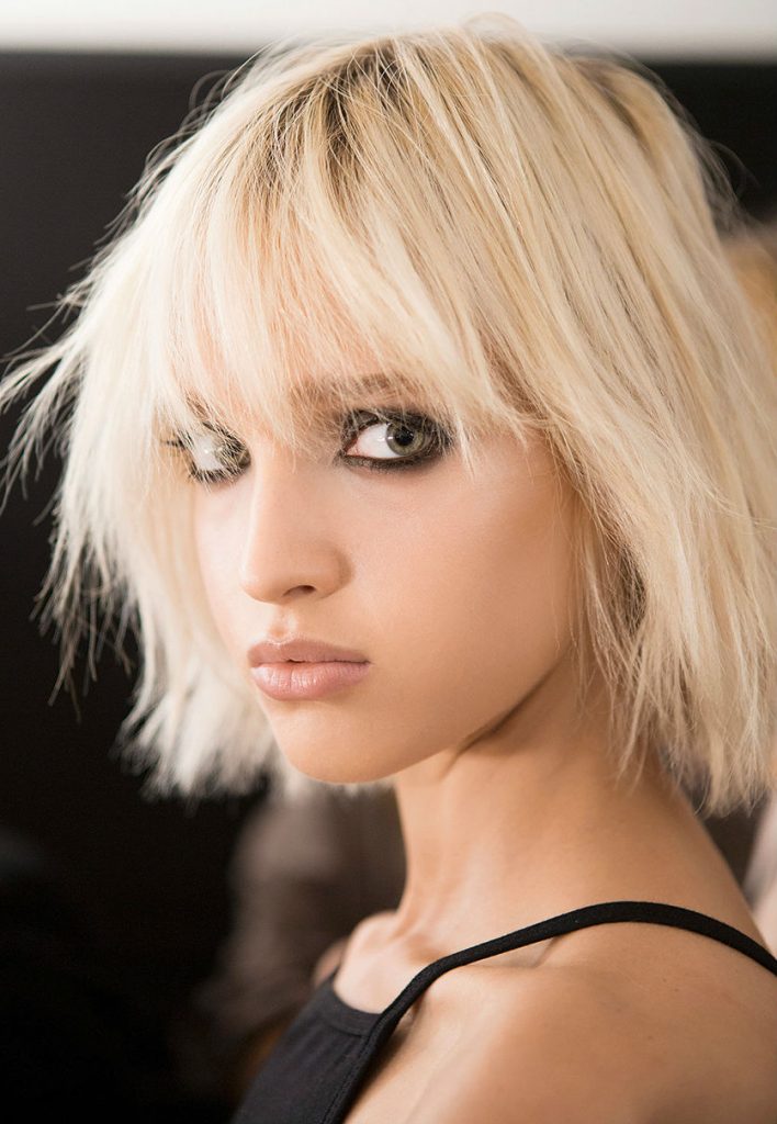 Lange Haare mit dickem, zerrissenen Knallen - ein weiterer Grüße aus der Vergangenheit. In den 60er Jahren sammelte ein solcher Haarschnitt dank der Schauspielerin Jane Birkin eine große Beliebtheit. Wie sie sagen, ist alles Neue gut vergessen alt.