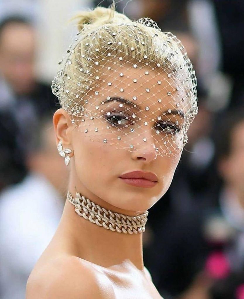 Der Schleier war schon immer ein Attribut von Weiblichkeit und ein unangefochbares Brautzubehör. Dieses kleine Detail gab ein HochzeitsbildHaley Baldwin.Notch Piquantie und Retro Chic.