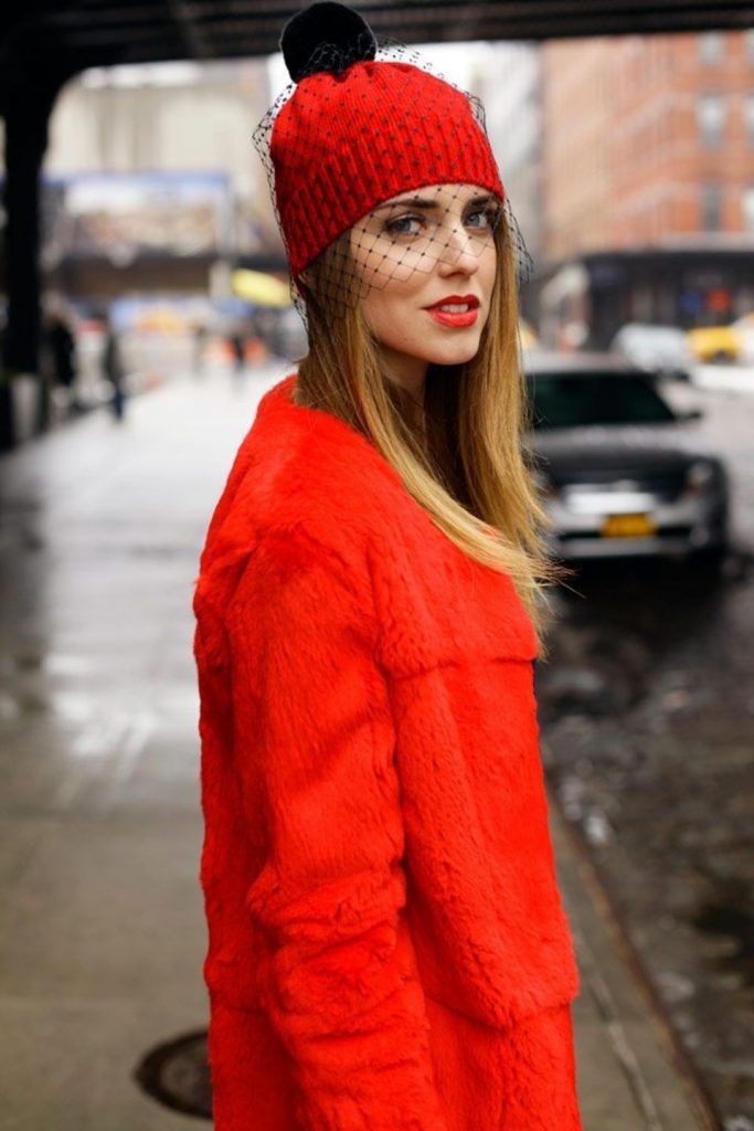 Das schwerelose Gitter ist perfekt mit den Winterhüten kombiniert. Dies wird nicht vom beliebten Blogger- und Symbolstil verdeckt, weiß darüber.Chiara Franchi..