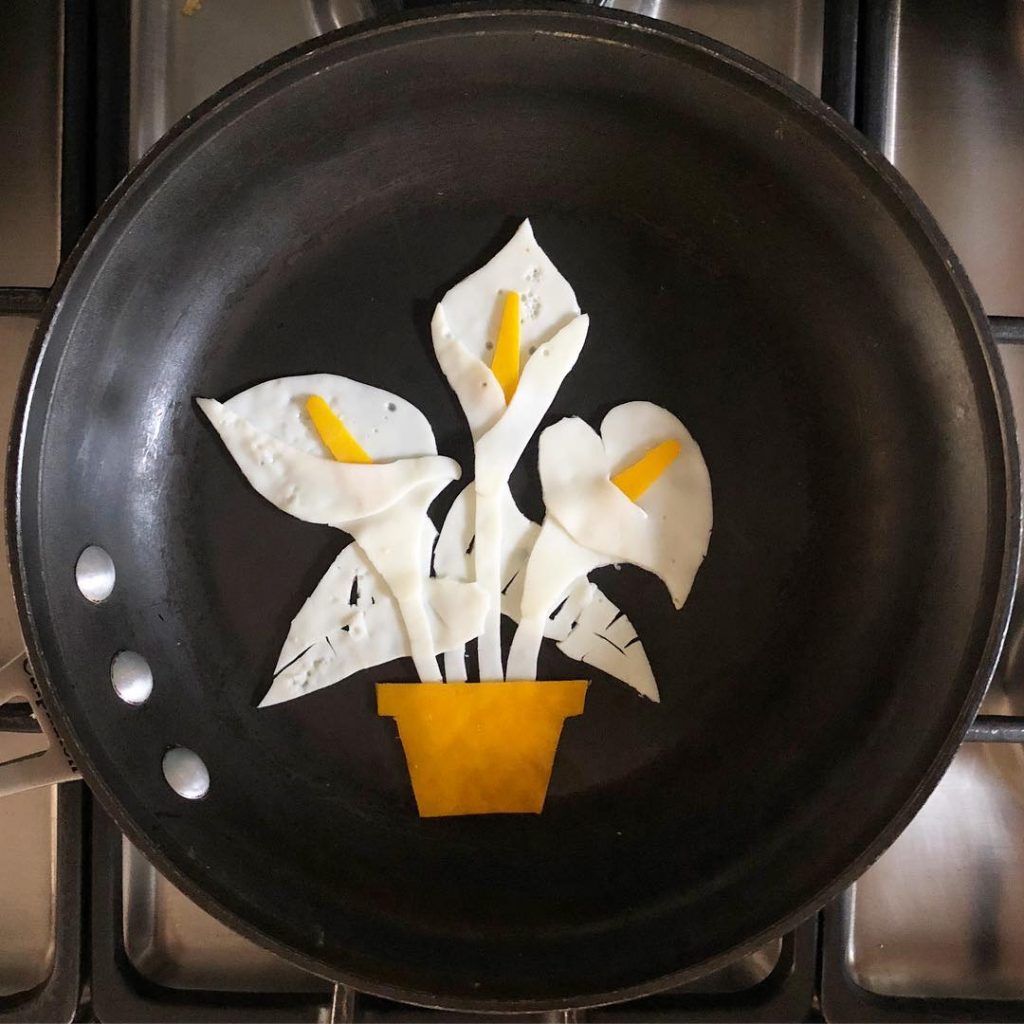Michele Baldini, ein junger medizinischer Student aus Mexiko, bereitet ein fantastisches Frühstück, das ein banales Rührei in echte Kunstwerke eindringt.