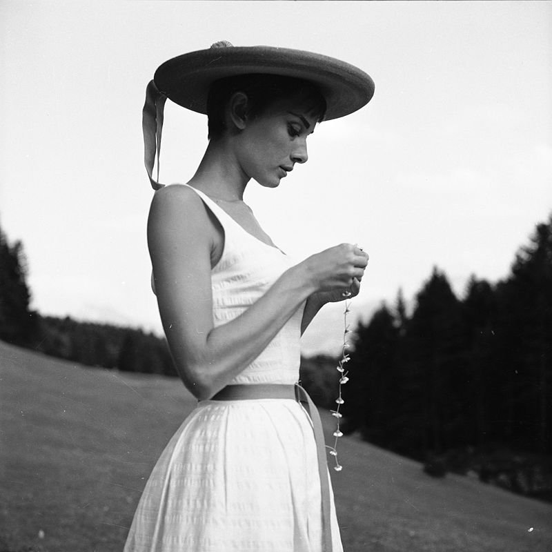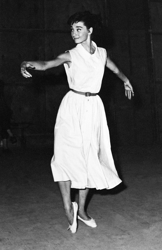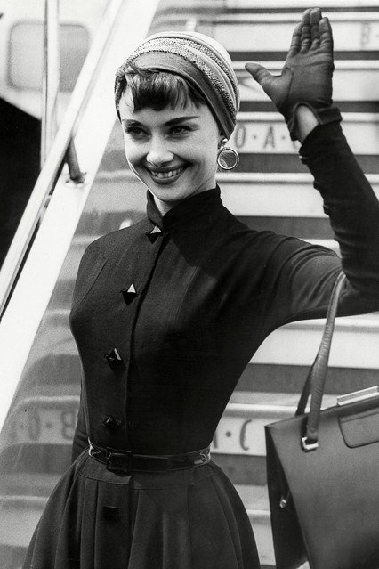 Der neue Look-Stil Christian Diora war in den 50er Jahren unglaublich beliebt. Audrey Hepburn erscheinte auch, in der Öffentlichkeit in eleganten Kleidern von A-Silhouette aufzutreten, was ihre genaue Figur ideal betonte. Oft kombinierte sie sie mit Handschuhen zum Ellbogen und bestätigte ihren Status "Diva".